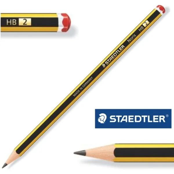 Lápiz Noris Staedler. Lápiz de grafito hexagonal especialmente resistente a la rotura gracias a la doble encoladura de la mina. Fabricado con madera certificada procedente de explotaciones forestales sostenibles.