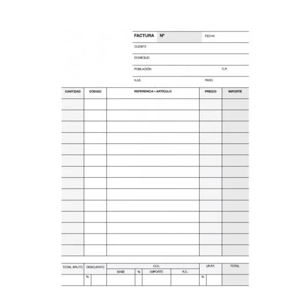 Talonario impreso Facturas o albaranes con original y una copia tamaño cuartilla. Original en blanco y copia en amarillo.