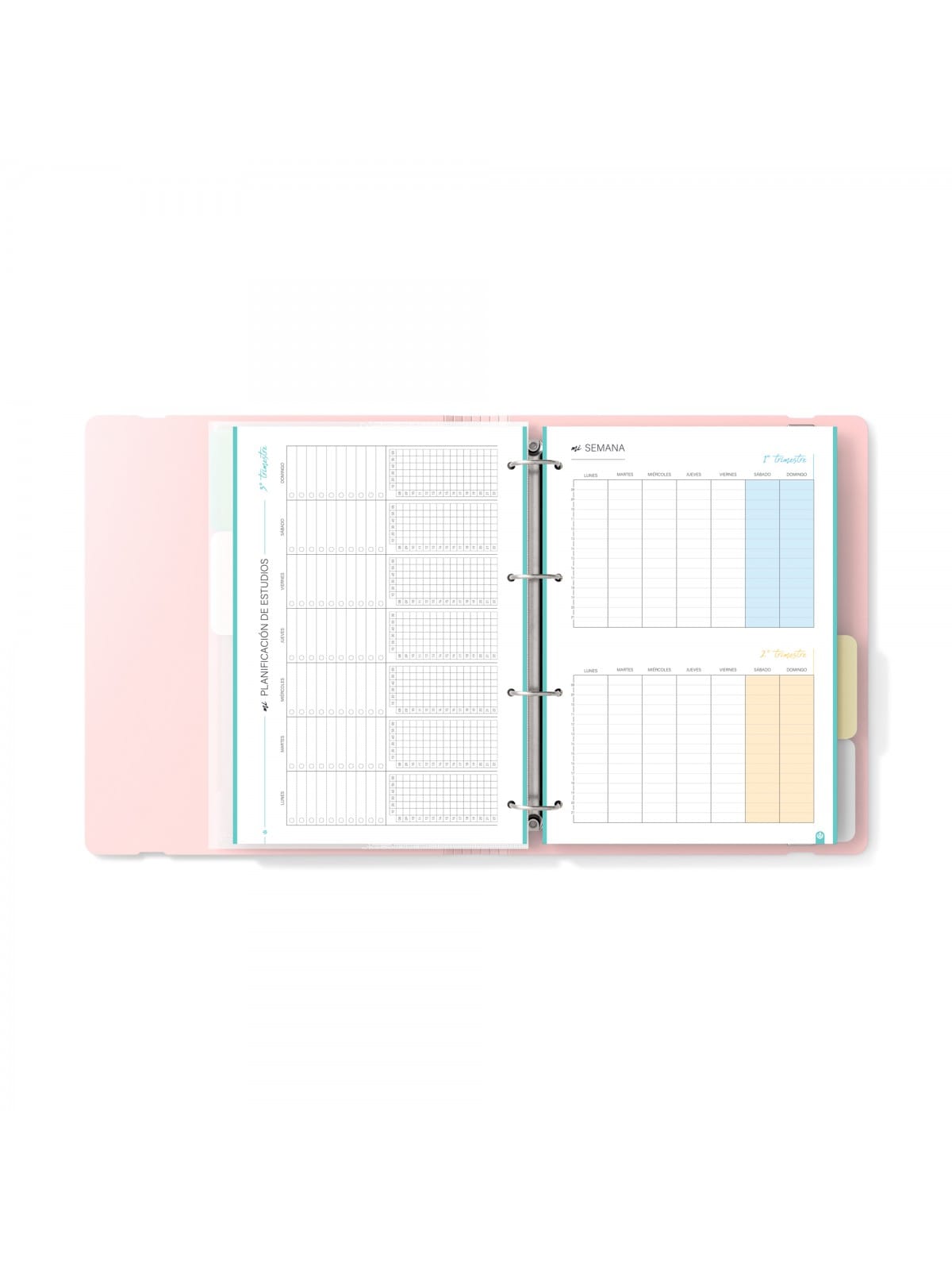 INCLUYE : un recambio de 100 hojas con el organizador de estudios BONUS, una práctica herramienta que permite planificar y controlar los estudios con una metodología sencilla y efectiva. Separadores y un sobre con cierre adherente, todo ello con un diseño espectacular y acabados de alta calidad.